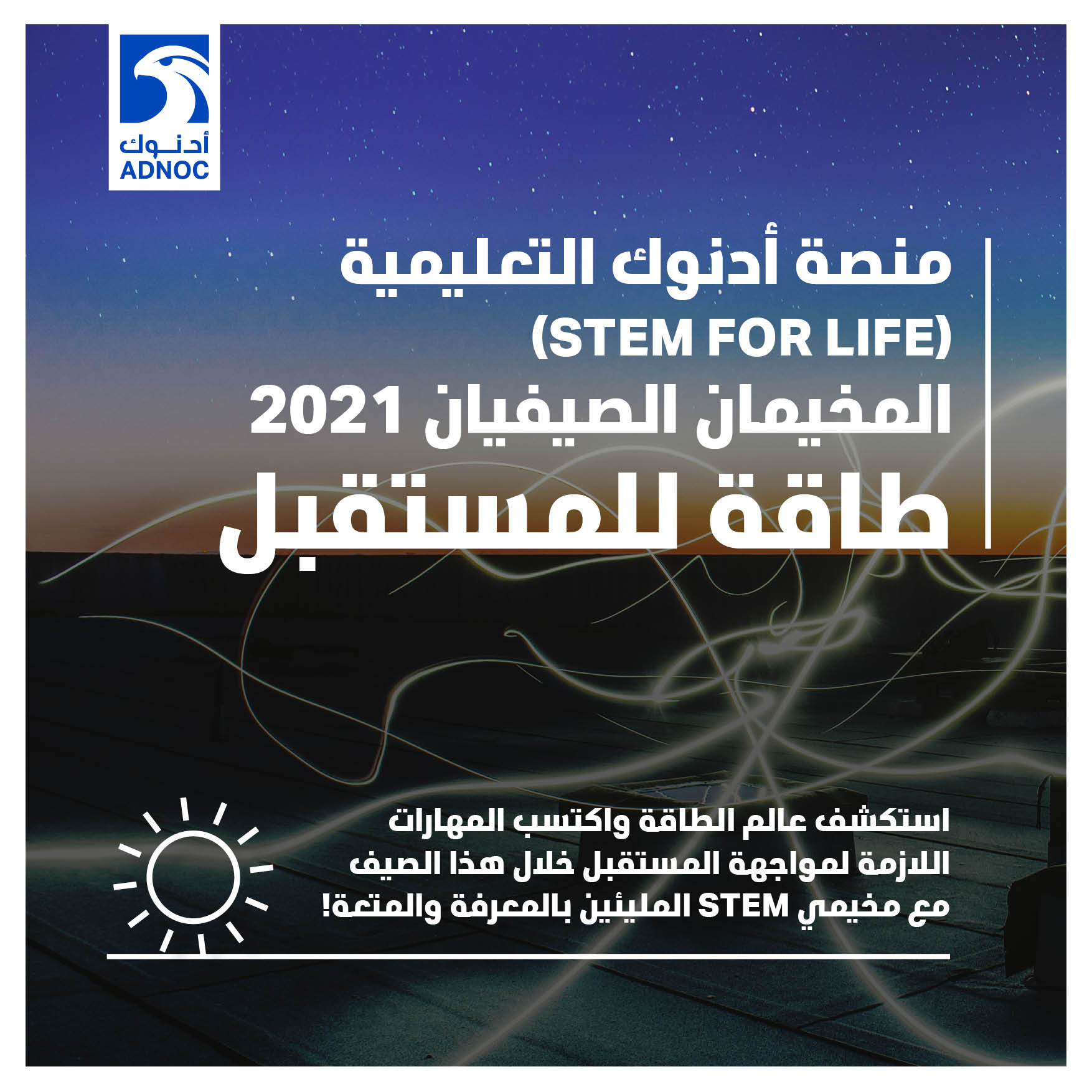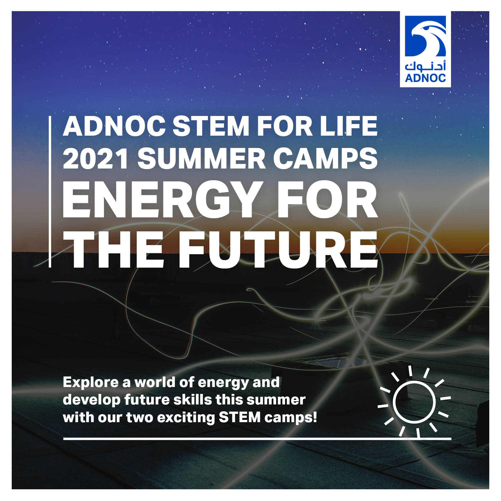 The ADNOC CSR team is excited to share our ADNOC STEM @ HOME program! It’s a free, STEM enrichment program for youth, and all of the activities can be completed using resources easily available at home. Explore a world of energy and develop future skills this summer with our two exciting STEM camps!