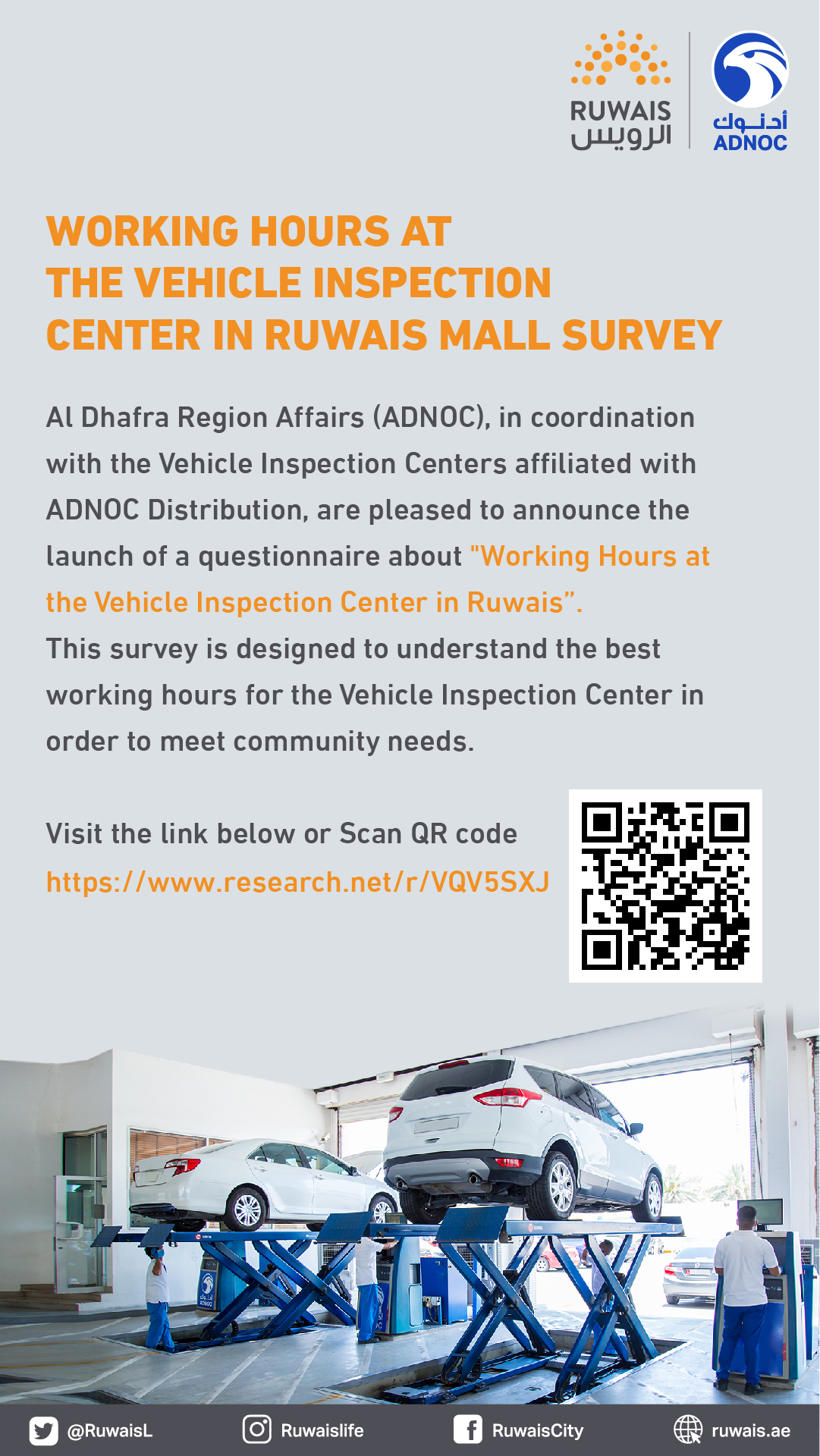 Working Hours at The Vehicle Inspection Center In Ruwais Mall Survey