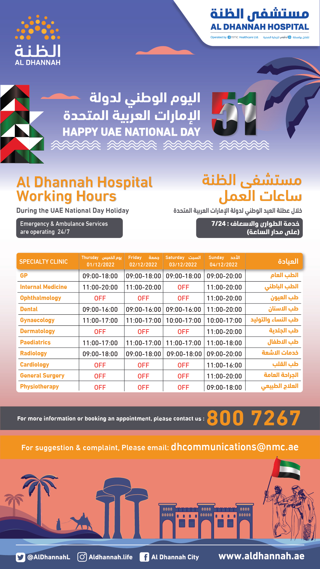 Al Dhannah Hospital Working Hours in UAE National Day