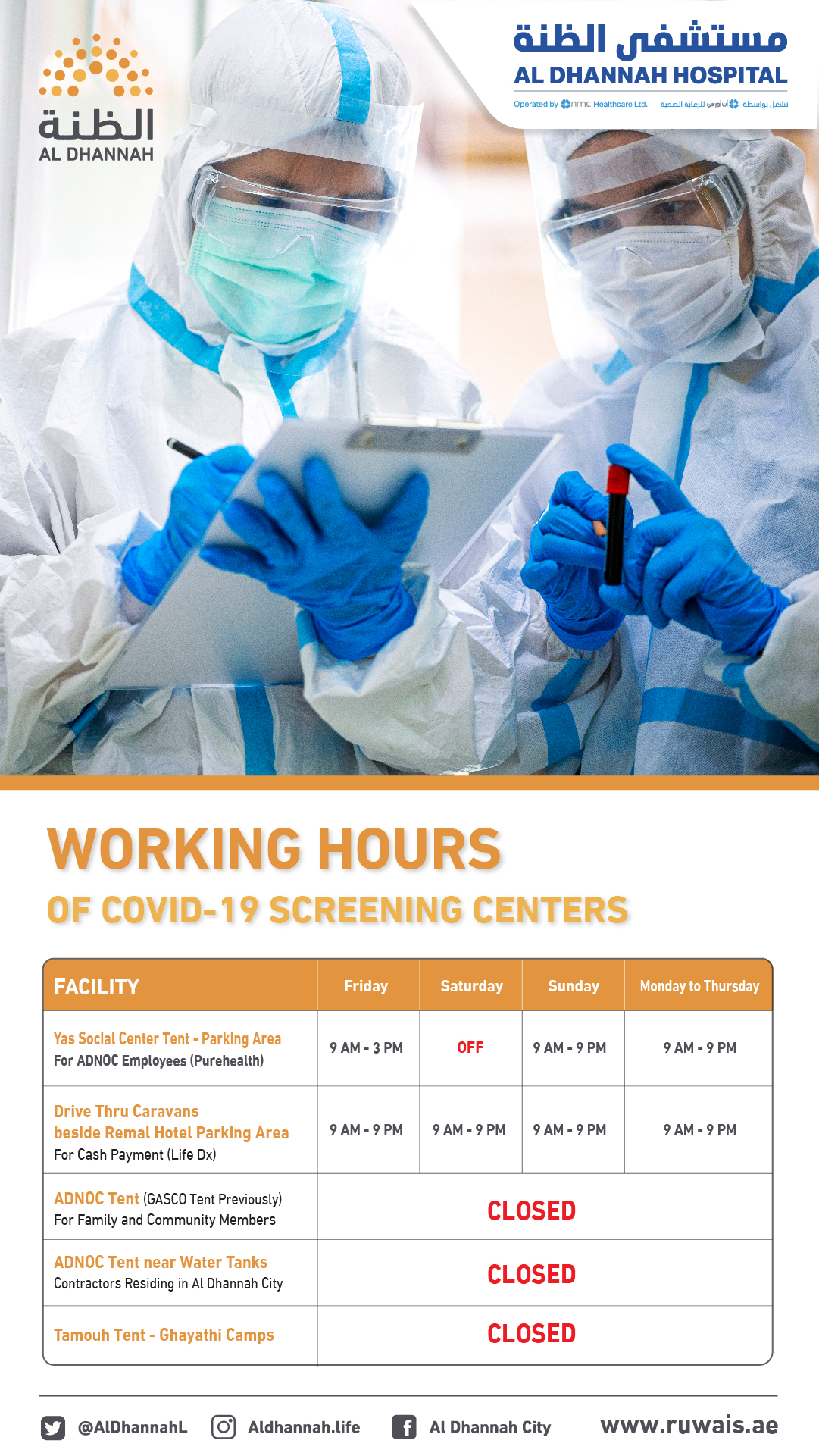 Working Hours of COVID 19 Screening Centers
