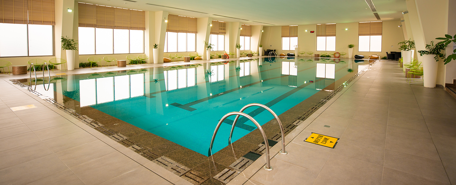 Facilities include a swimming pool, gym, sports hall, billiards, kid's play area, indoor walking track, outdoor lawn tennis, and even a library for exercising your mind. Open from 8am to 10pm.