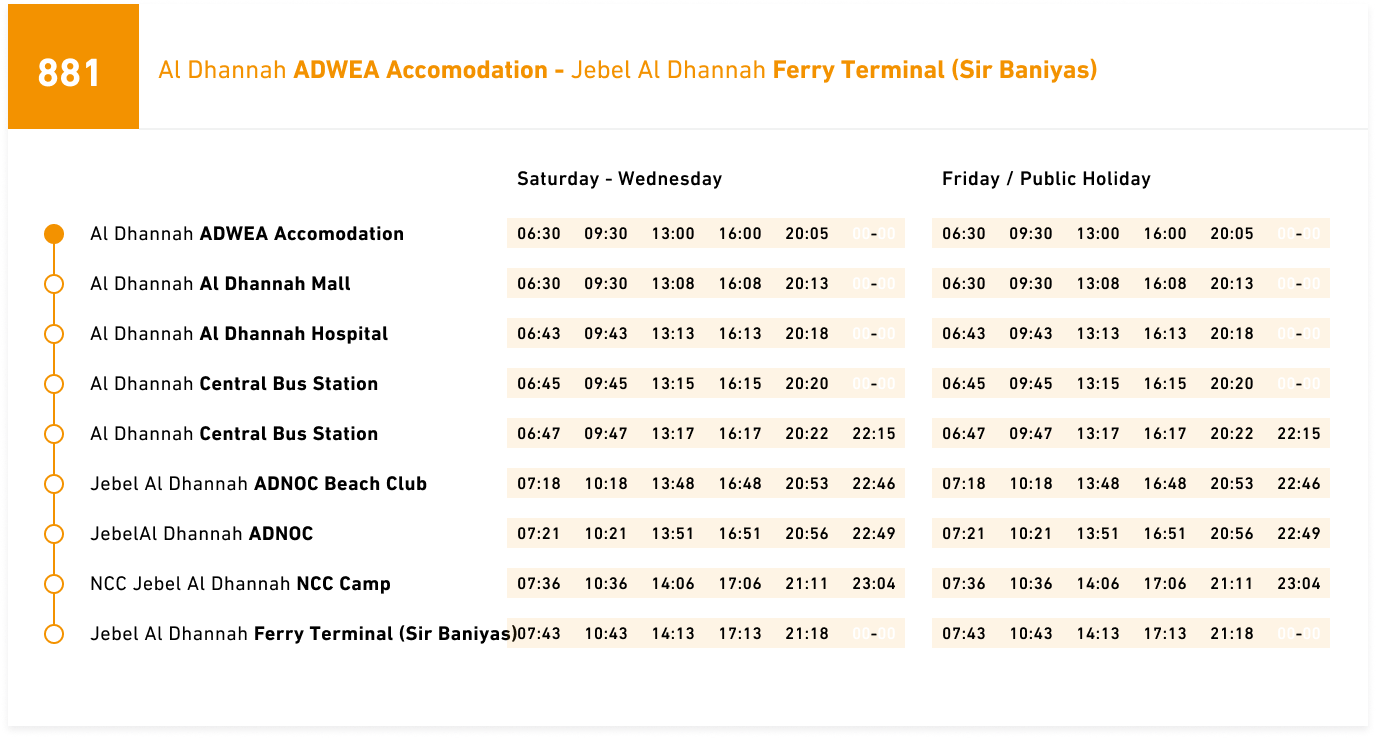 Al Dhannah Mall - Jebel Al Dhannah Ferry Terminal (Sir Baniyas)